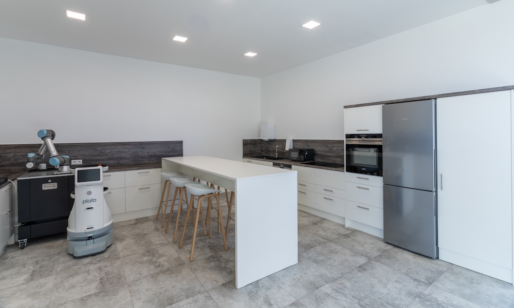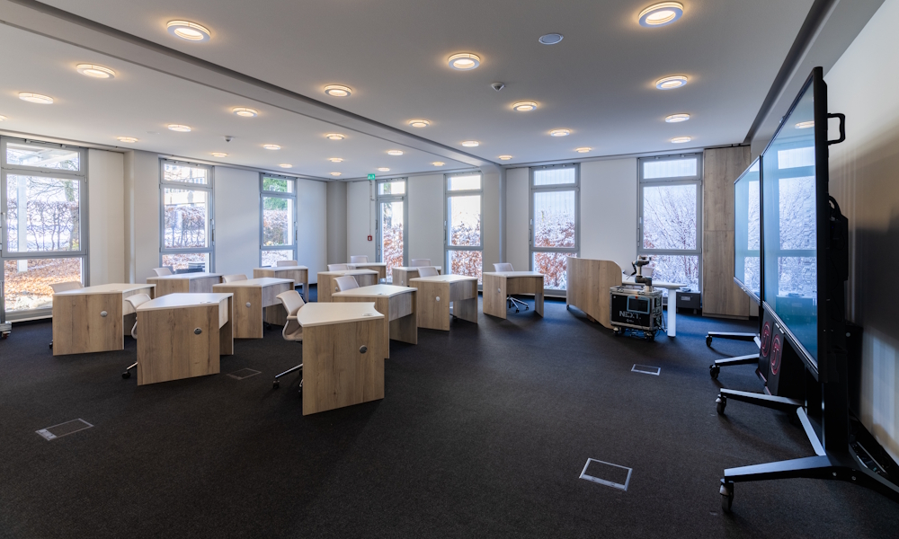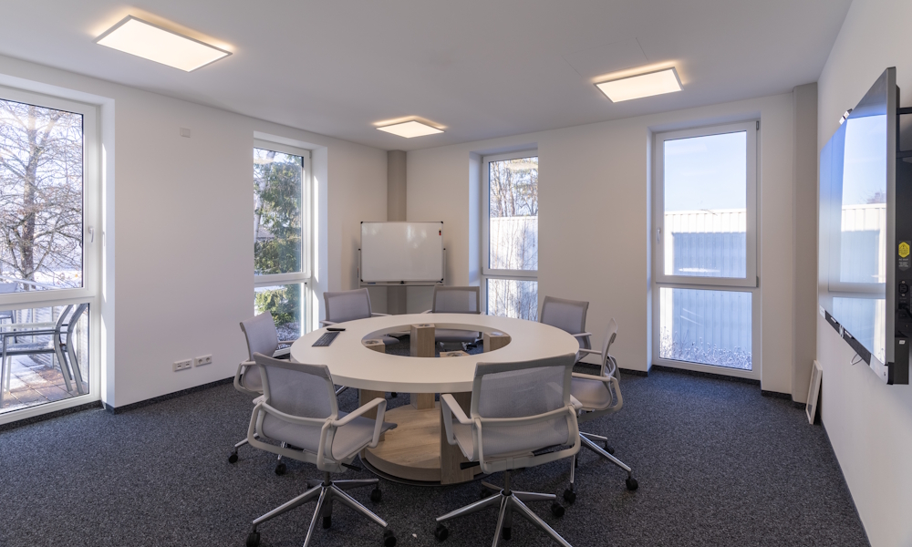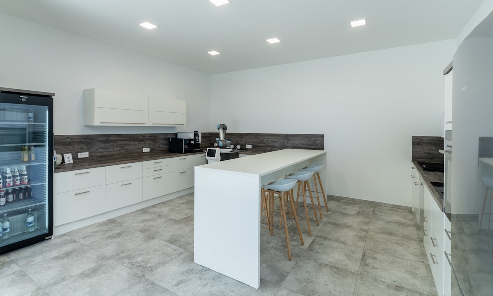 Cafeteria im Erd- und Obergeschoß, Arbeitsplätze vom Feinsten, Schulungs- und Besprechungsräume sowie Ausstellungsflächen die ihresgleichen suchen. Und zu guter Letzt eine Außenterrasse nach Süden ausgerichtet.